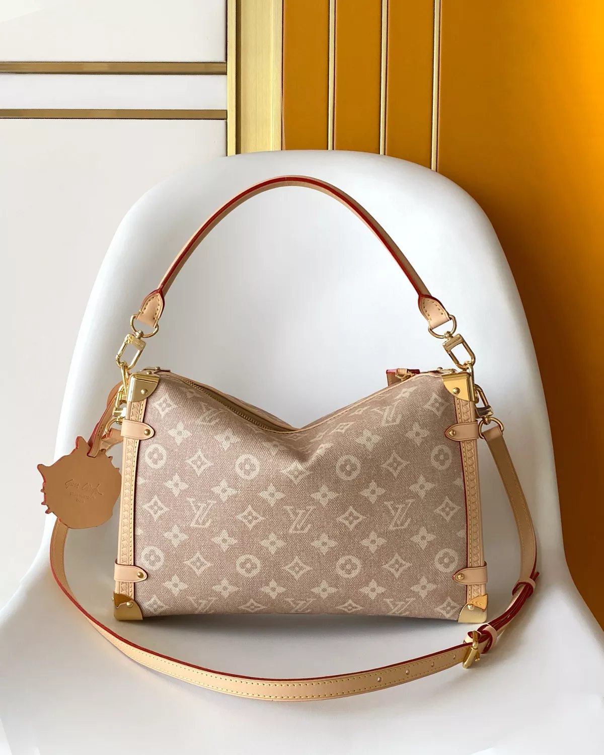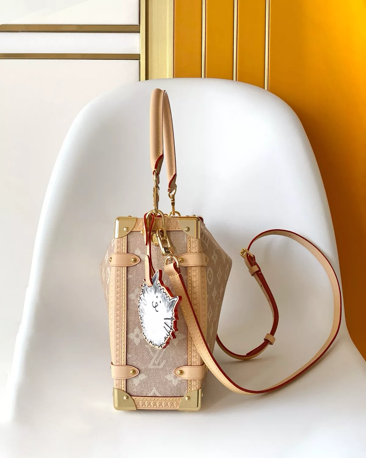 The Side Trunk GM “Meowgram Canvas” blends vintage-inspired charm with playful artistry. Designed with a signature Meowgram pattern and trimmed in smooth cowhide leather, this modern trunk bag captures the spirit of travel and creativity.