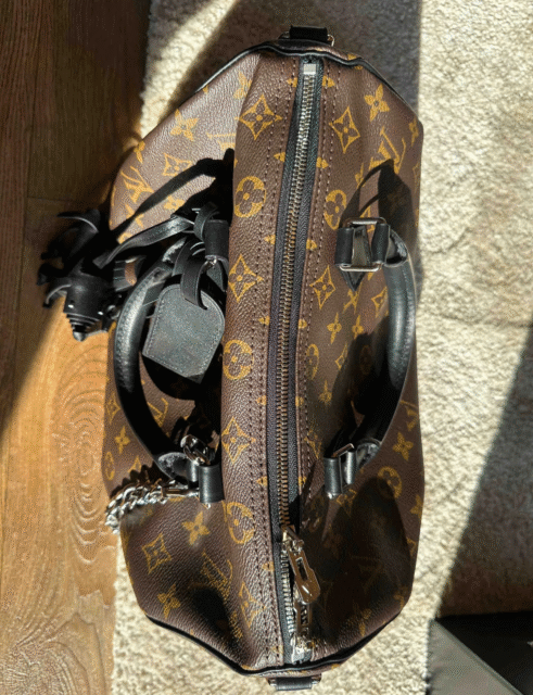 Make a bold style statement with the rebce Speedy Soft 30 “Dark Edition”, a modern twist on the classic travel bag. Crafted from Monogram Black coated canvas with sleek leather trims and lining, this bag exudes confidence and edge. Its standout details include a gothic-inspired chain, name tag, and tassel, paired with a Toron handle for comfortable carry. The spacious interior, featuring a zipped pocket, fits all your essentials from a 9-inch tablet to sunglasses and wallet, making it both chic and practical for everyday or travel use.